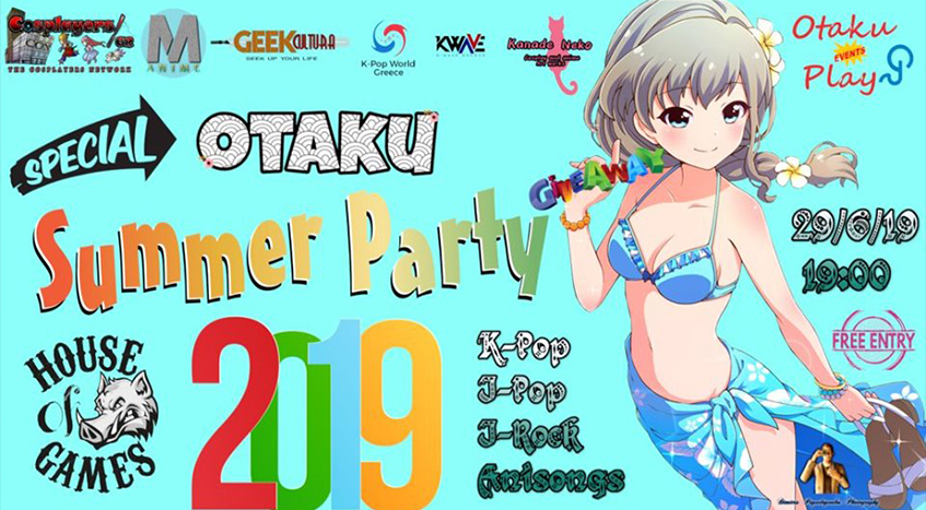 “Σας προσκαλούμε όλους στο Special Otaku Summer Party 2019 όπου θα γίνει στις 29 Ιουνίου στο House Of Games στο Αιγάλεω! Το κατάστημα βρίσκεται Μυριοφύτου και Κωνσταντινουπόλεως, γωνία πλησίον Μετρό Αιγάλεω.
