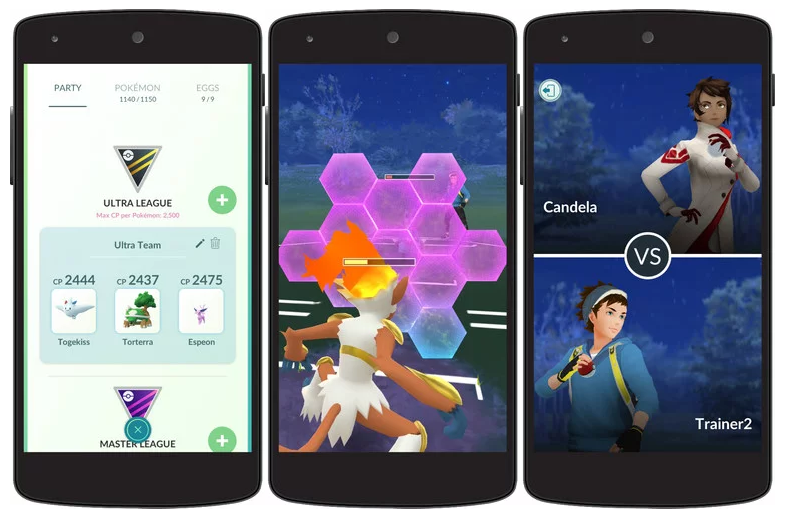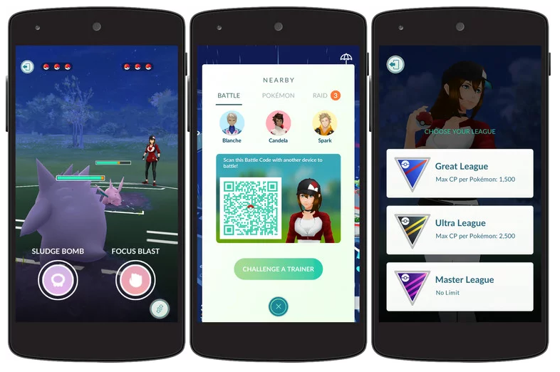 Πριν την έναρξη της μάχης, οι εκπαιδευτές θα πρέπει να επιλέξουν ανάμεσα από 3 κατηγορίες μάχης, ανάλογα με τα CP των Pokemon τους. Στην Great League το όριο στα CP είναι 1500, στην Ultra League το όριο ανέρχεται σε 2500 CP, ενώ στην Master League δεν θα υπάρχει κανένα όριο.