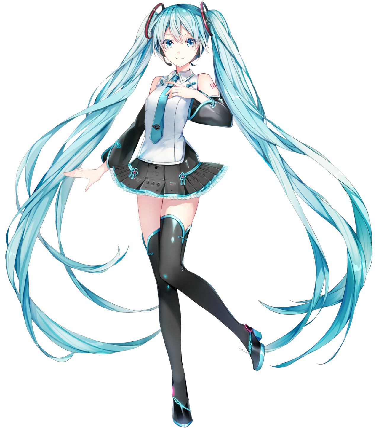 H Hatsune Miku είναι ένα 16χρονο κορίτσι με μακριά, τιρκουάζ διπλή κοτσίδα. Χρησιμοποιεί τις τεχνολογίες σύνθεσης τραγουδιών Vocaloid 2, Vocaloid 3 και Vocaloid 4 της Yamaha Corporation. Σαν χαρακτήρας είναι χαριτωμένη, είναι είδωλο και αγαπάει το τραγούδι.
